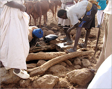 سيد أحمد ولد عبدي في إحدي قرى الحوض الغربية النائية يبدأ مشوار البحث اليومي عما يسد به رمق أهله وماشيته من الماء في حدود الساعة الواحدة صباحا، حيث يستقل جمله باحثا عن بئر لم يسبقه إليها أحد من أهالي القرى المجاورة الذين نضبت آبارهم، وجدبت أراضيهم.